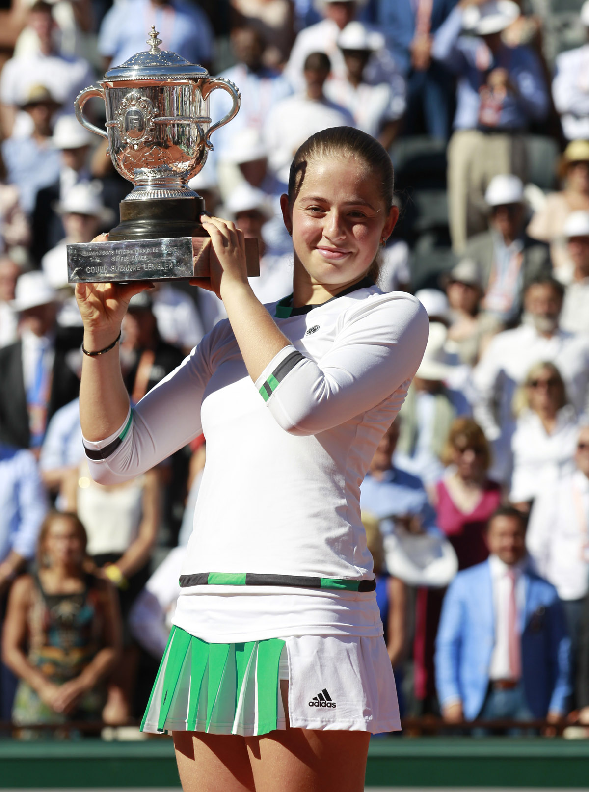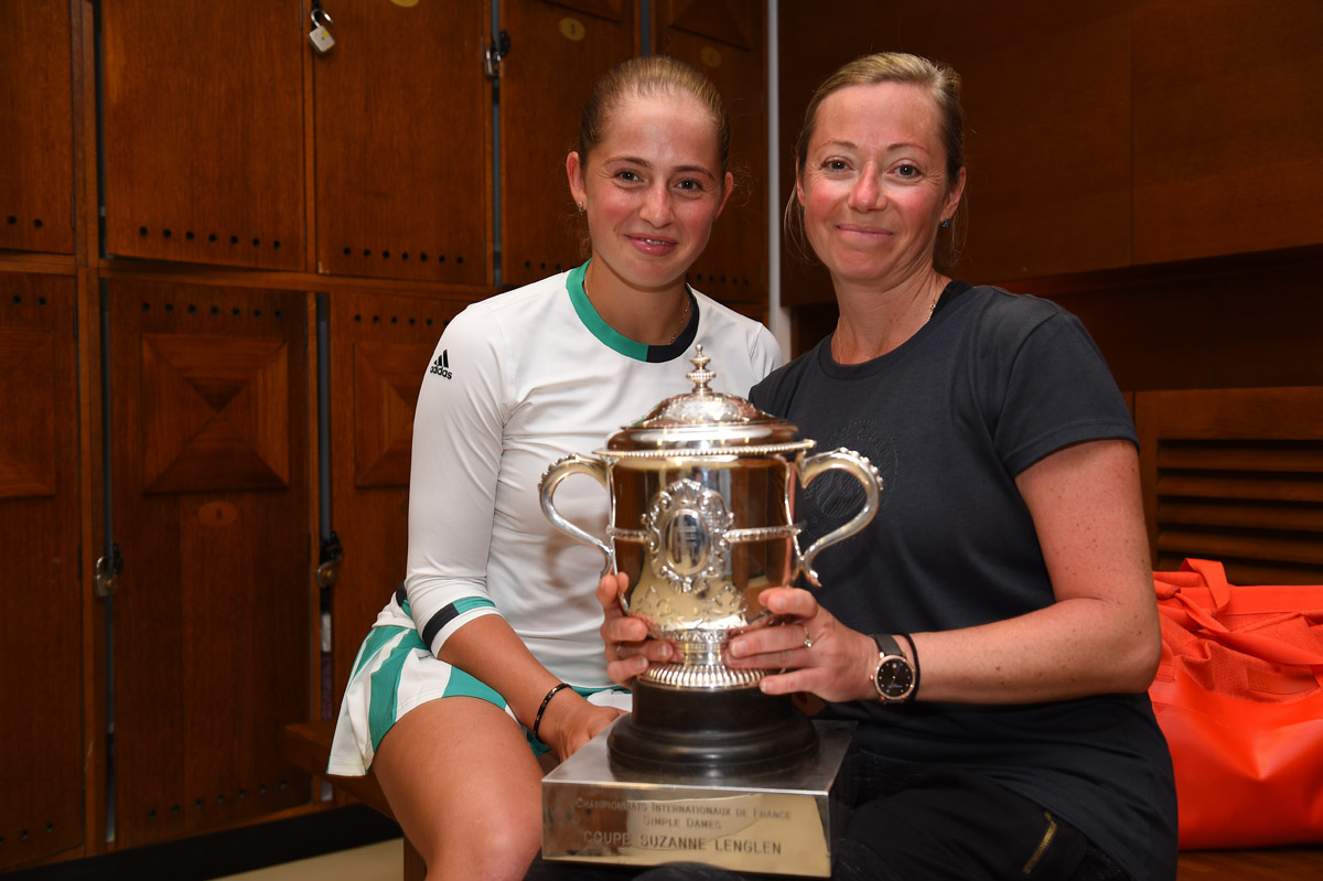 - INTERNATIONAUX DE FRANCE – ROLAND GARROS 2017 – PARIS (FRA) – REMISE DE PRIX – SIMPLE DAMES – FINALE – OSTAPENKO/HALEP – OSTAPENKO Jelena (LAT) – PHOTO : POOL/FFT/CORINNE DUBREUIL