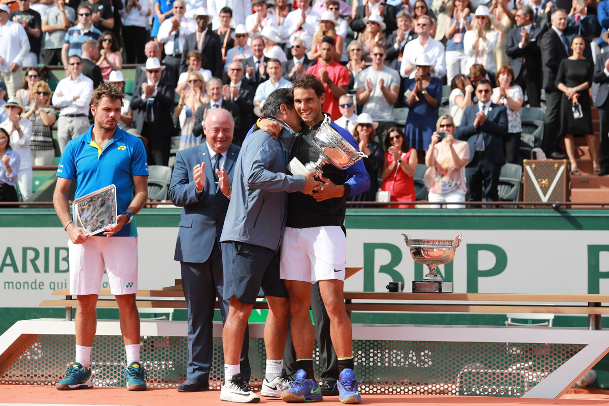 - INTERNATIONAUX DE FRANCE – ROLAND GARROS 2017 – PARIS (FRA) – REMISE DE PRIX – SIMPLE HOMMES – FINALE – WAWRINKA/NADAL – NADAL Rafael (ESP) ET SON PERE NADAL Sebastian – PHOTO : PHILIPPE MONTIGNY / FFT