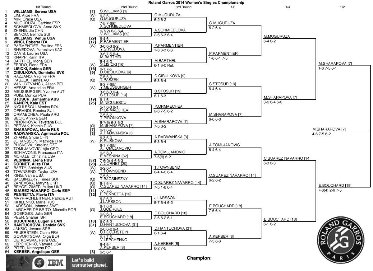 Descárgate el cuadro femenino de Roland Garros a Viernes 6 de Junio